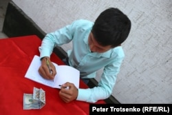 Молодожены на дунганской свадьбе. Село Сортобе, Казахстан, 27 августа 2018 года Photo: Peter Trotsenko (RFE/RL)